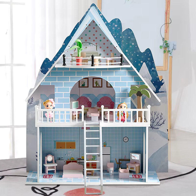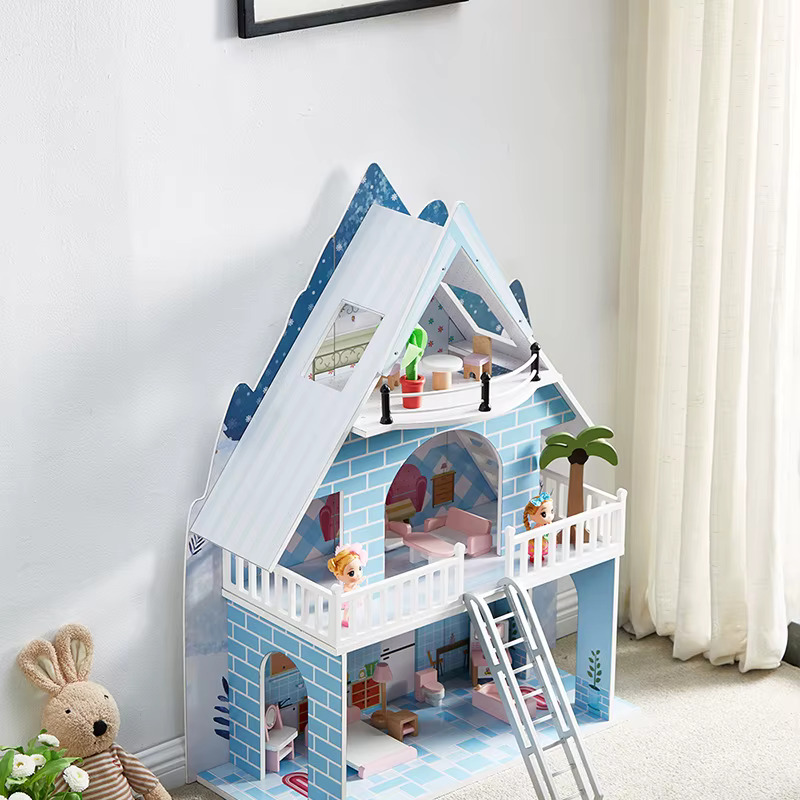 Drvena vila na dva sprata sa lutkcima i dodacima