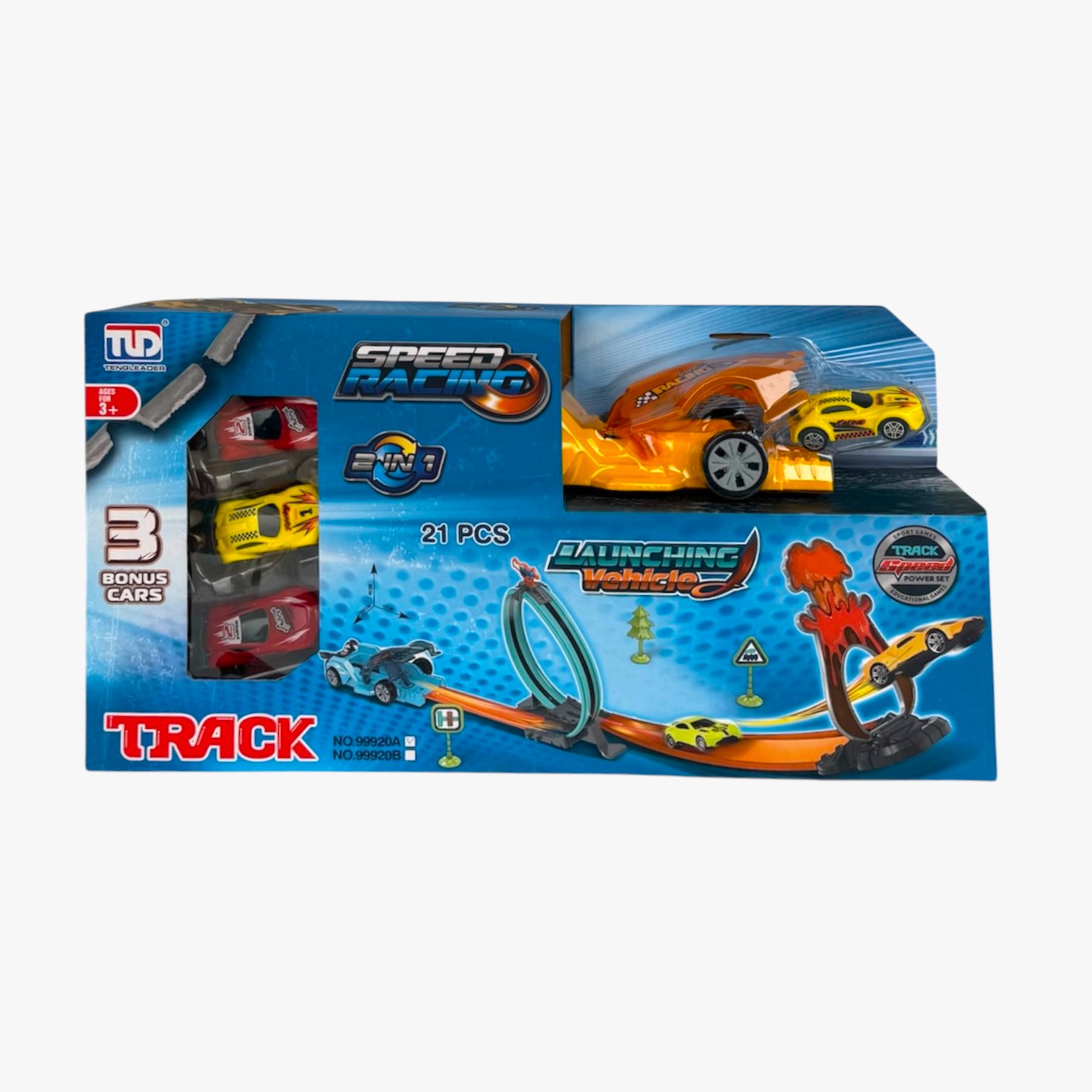 Auto katapult set sastoji se od jedne velike kruzne trake, 5autica i 7 formula.