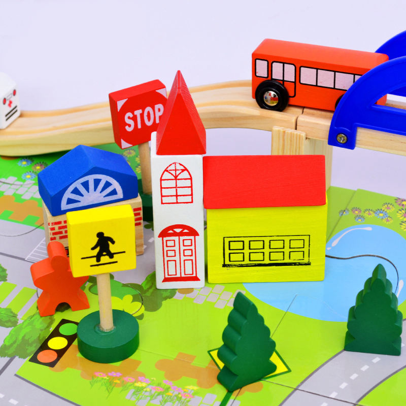 Sastoji se od iscrtane podloge, drvenog puta i mosta koji se mogu kombinovati na različite načine, a tu su i autići, kućice, stanica, saobraćajni znaci...što garantuje dugotrajnu zanimaciju, bilo da se dete igra samo ilil u društvu.