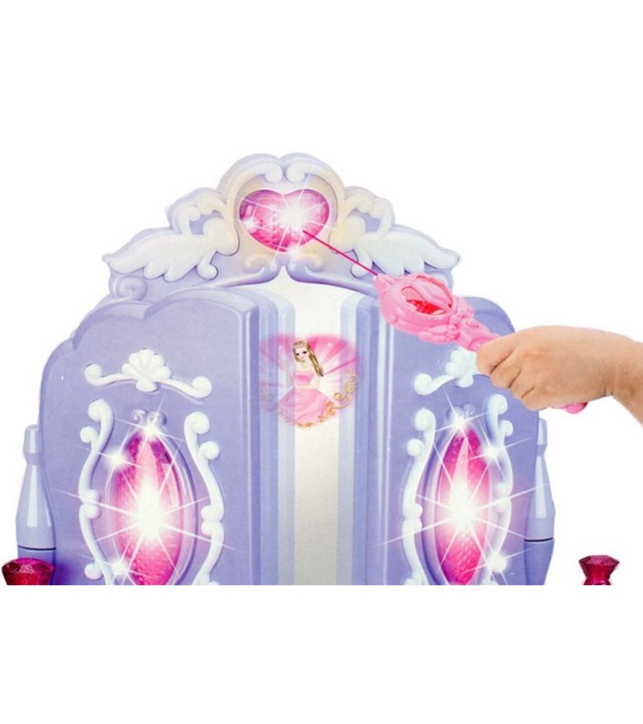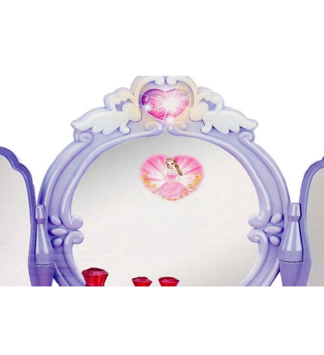 Krila ogledala otvaraju se pomoću čarobnog štapića koji djeluje na infracrveno, tako da se djevojčica osjeća kao prava vila. Na ogledalu se pojavljuje lik princeze . Sto je takođe opremljen zvučnim i svjetlosnim efektima. Kada se ogledala otvore, svira glazba i bljeskaju svjetla, a kada dijete ne koristi toaletni stolić, ogledala se automatski zatvaraju. Ogledalo je izrađeno od nelomljivog materijala , što povećava sigurnost djeteta.