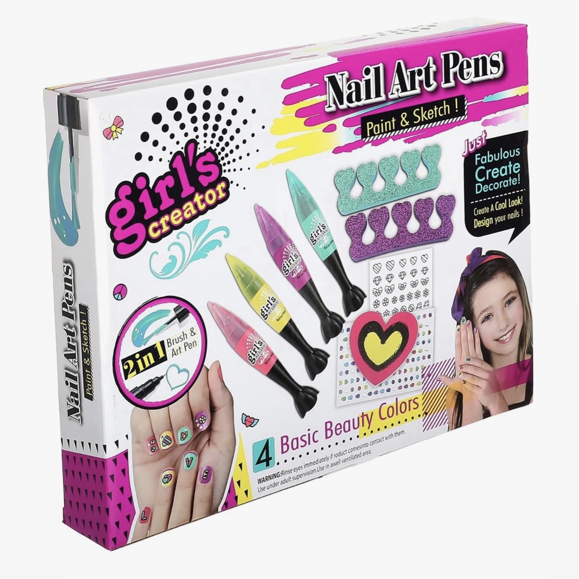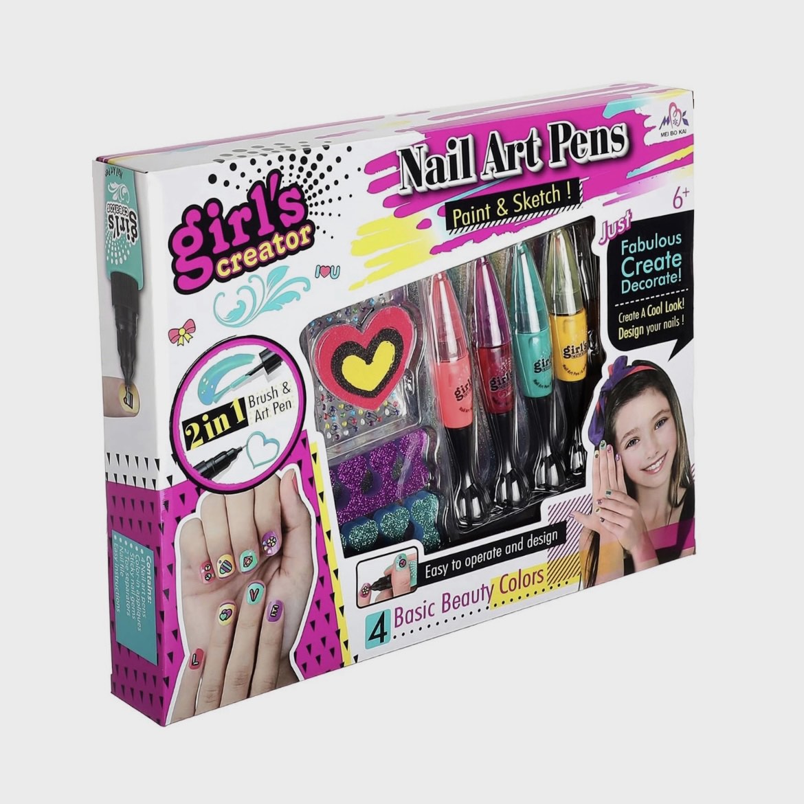 Manikir art set 4 boje laka i olovku za crtanje, stikere i dodatke.