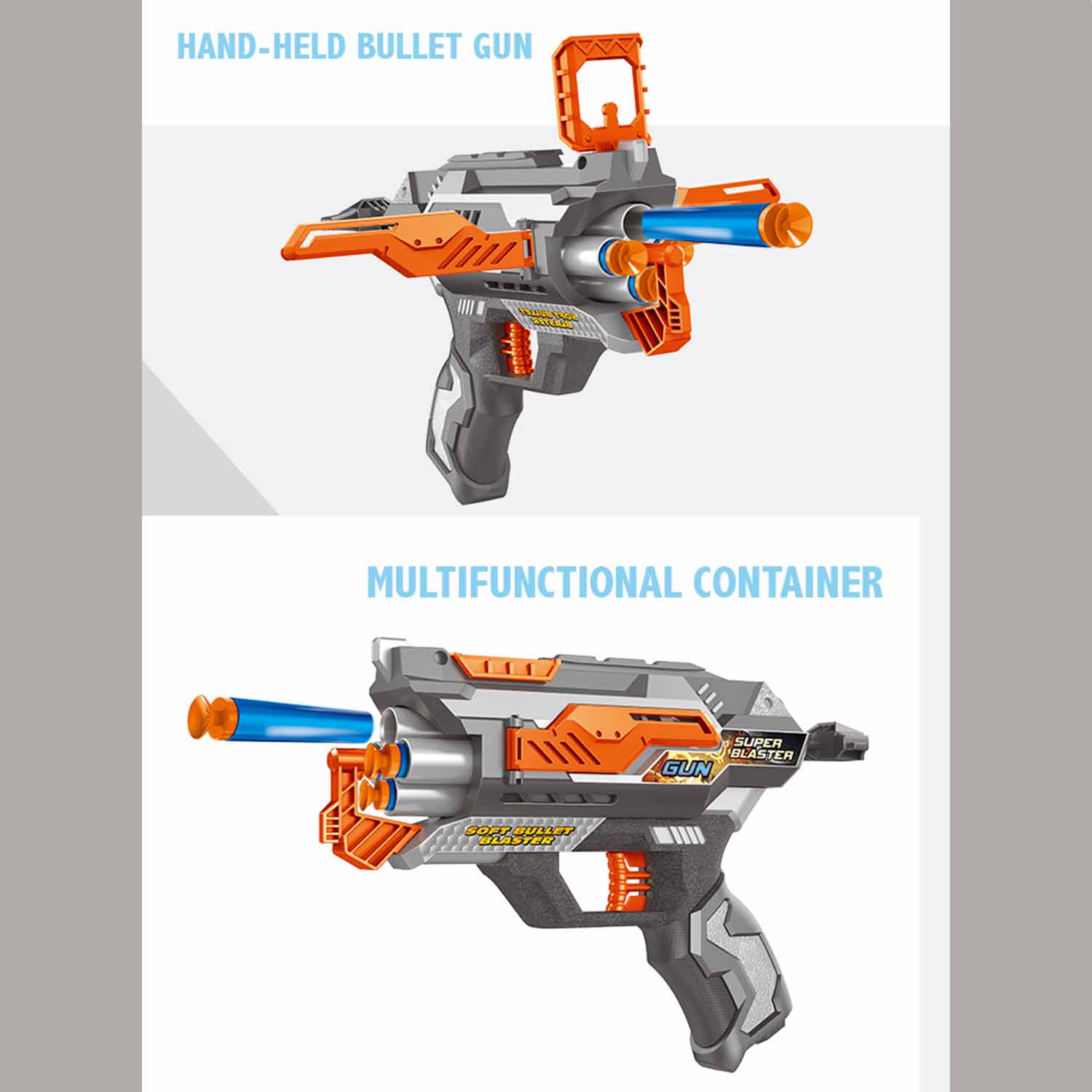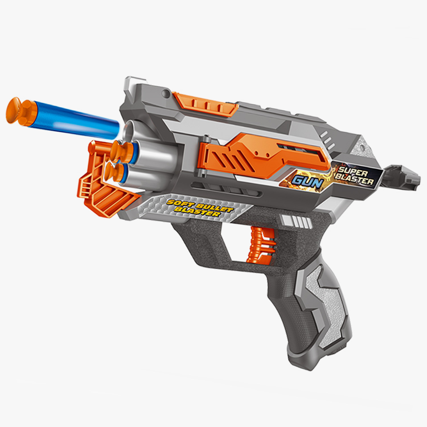Plastični pištolj sa nišanom i mekim mecima je zabavna igračka za decu starijeg uzrasta kojoj će se svideti njen atraktivni dizajn, brzina i preciznost. Meci su izrađeni od sunđerastog materijala što dečiju igru čini bezbednom.