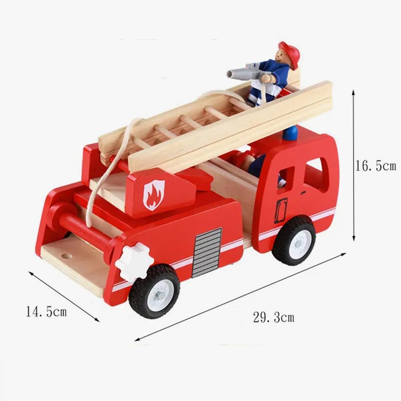 SOVA DRVENI VATROGASNI KAMION obećava dugu i zabavnu igru! Crveni kamion izuzetne izrade sa divnim, s puno pažnje urađenim detaljima - pokretne stepenice, crevo za gašenje požara i figurice, stimuliše dečiju maštu i podstiče ih da smišljaju razne priče i situacije u kojima će se naći hrabri vatrogasci.