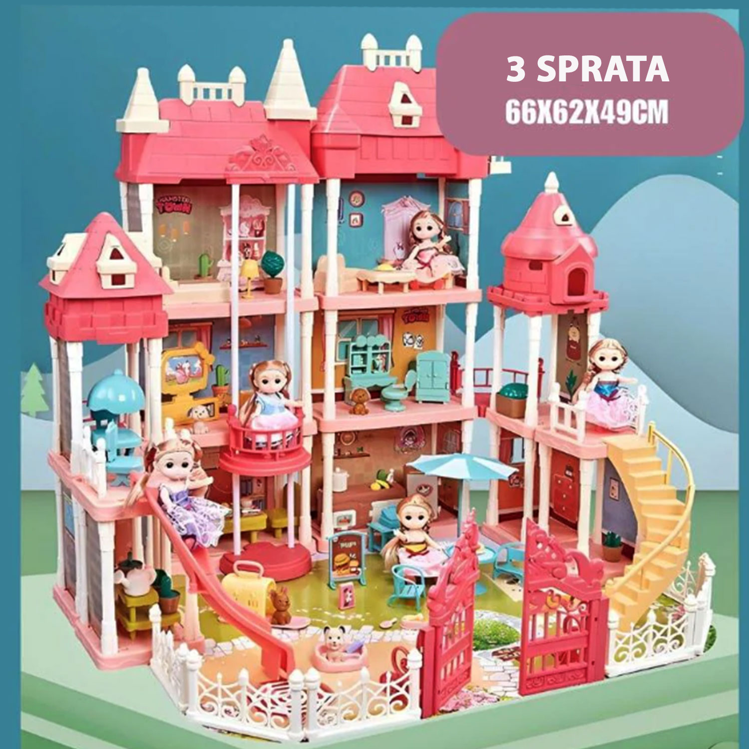 Veliki dvorac / kuća sa lutkicama i namještajem -visina 62cm